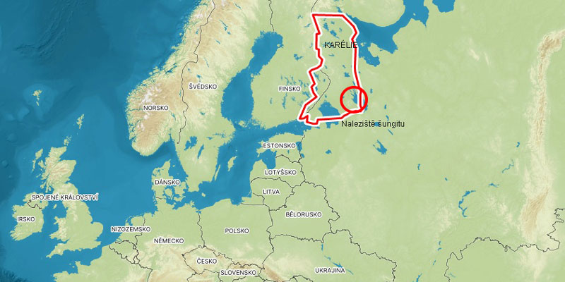 Šungit je hornina pocházející ze severozápadního Ruska, z oblasti Karélie, kde je její nejvýznamnější náleziště. Je to po diamantu, grafitu (tuze) a grafenu čtvrtá forma existence uhlíku.